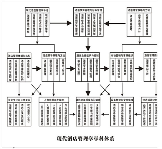 涉及酒店收益管理、非人力资源管理、全面服务质量管理、酒店客房预算管理、客房预订管理、旅客接待管理、前厅客务关系管理、楼层服务管理、酒店服务意识及服务细节管理、中外酒店集团比较研究、企业文化建设及团队建设等课程。
