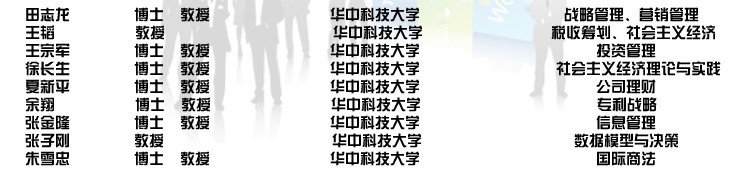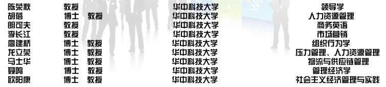 以下为华中科技大学参与讲授EMBA课程的部分师资及主要课程信息:
