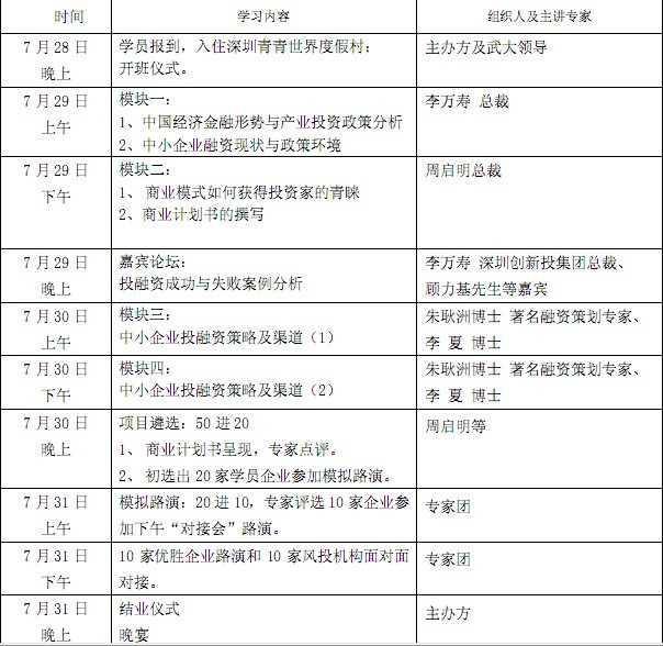 1、目前中国投资业界规格最高的培训:授课专家将由海内外一流风险投资家、银行证券业高管、管理专家进行授课。