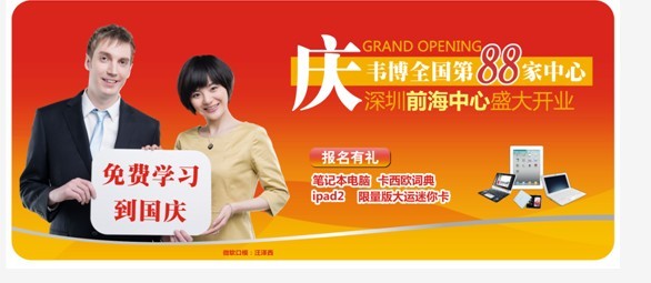庆韦博国际英语前海新中心入驻深圳,现在报读韦博常规班课程可免费学习到国庆节!更有笔记本电脑,卡西欧词典,Ipad2及限量版大运迷你卡赠送!