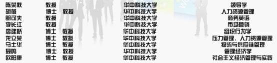 以下为华中科技大学参与讲授EMBA课程的部分师资及主要课程信息: