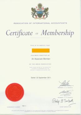 证书说明: 通过考试之后,由AIA英国总部颁发的AAIA全权会员资格证书,该证书为英国政府和多国承认的具备国际审计执业签字资格的注册会计师CPA人员持有。