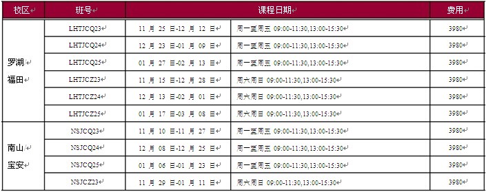 (以下上课时间为参考时间,根据课程的进行情况以实际课程表安排为准)