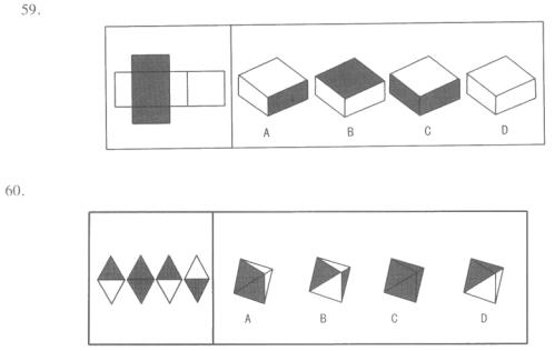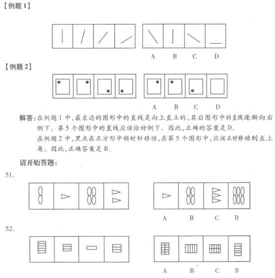 2. 每道题包含两套图形和可供选择的4个图形。这两套图形具有某种相似性,也存在某种差异。要求你从四个选项中选择你认为最适合取代问号的一个。正确的答案应不仅使两套图形表现出最大的相似性,而且使第二套图形也表现出自己的特征。