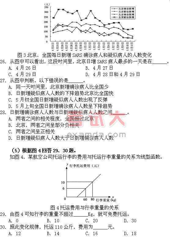 每道题给出五个事件,每个事件是以简短语句表述的,接着给出表示事件的四种假定发生顺序的数字序列,请你选择其中最合乎逻辑的一种排列顺序。