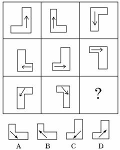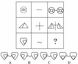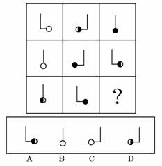 (二)左边的图形由若干个元素组成。右边的备选图形中只有一个是由组成左边图形式的元素组成的,请选出这一个。注意,组成新的图形时,只能在同一平面上,方向、位置可能出现变化。