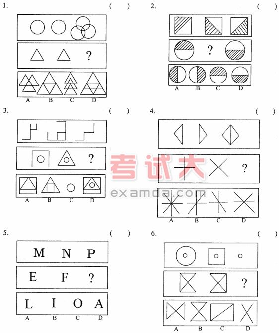 在下面的每道题中都给出了一个概念的定义,在这项考试中,本定义被假设为正确的、不容置疑的。请你根据这个定义,从四个备选的事物或行为中选出一个最为符合或最不符合该定义的典型事物或行为,并在括号中写出正确答案。