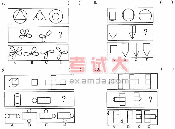 这类题型考查考生对事物的逻辑推理能力,根据两个或两类事物之间某些属性上的相同或相识做出一种推断。通过题中给出的一对相关词,在备选答案中选出一对与之在逻辑关系上最为贴近或相似的词,请将正确答案填写在括号中。