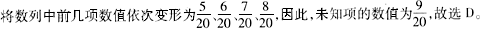 [解析] 该数列是以53为首项,公差为-11的等差数列,因此,括号内应填入的数值为 20-11=9,故选A。