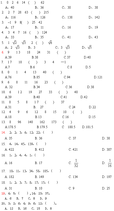 (一)给你一个数列,但其中缺少一项,要求你仔细观察数列的排列规律,然后从四个选项中选出你认为最合理的一项来填补空缺项。