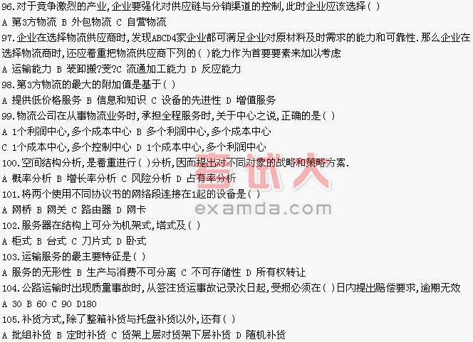 6.物流对企的重要程度相对较低,同时企业处理的物流能力也低,此时宜选择( )方式来处理物流