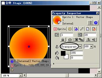 (5) 在Internal Cast窗口中,单击并拖动Cast演员2到舞台的中央位置,生成精灵2。将其Ink属性设置为Transparent类型,此时效果如图8-33所示。
