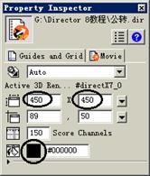 1) 进入Director 8.5。执行Modify→Movie→Properties命令,在弹出的舞台属性检查器对话框中将电影舞台的大小设置为450×450,将背景颜色设置为黑色,如图8-29所示。
