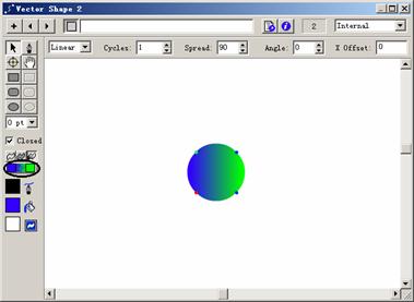 (3) 在图8-30所示的窗口中单击“+”按钮,新建一个空白区域,在工具面板渐变颜色工具栏框中,设置前景色为浅蓝色,目标色为绿色,使用Filled Ellipse工具,按住Shift键,在窗口中创建一个较小的圆形。并做自定义设置,如图8-31所示。