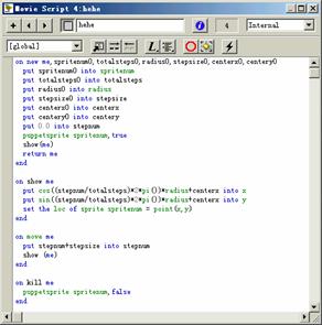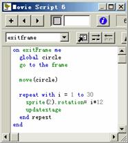 (9) 在舞台窗口中,右击精灵1,在弹出来的快捷菜单中选择Script命令,在弹出的Script窗口中输入以下Lingo控制语句,如图8-37所示。