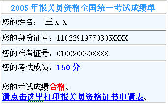 注意:考试成绩不合格的考生,不能打印《报关员资格证书申请表》。