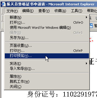点击IE工具栏中的“文件”按钮(),出现下拉菜单,选择“打印预览”,如下图: