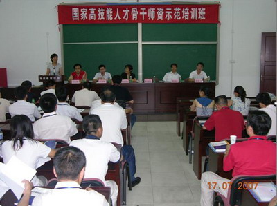 7月17日上午,国家高技能人才骨干师资示范培训班第一期(维修电工专业班)开学典礼在广东省广东工业大学顺利举行。中国就业培训技术指导中心培训处蒋燕辰处长、广东省职业技能鉴定指导中心周国添主任、国家高技能人才骨干师资示范培训项目督导徐思平校长助理、广东工业大学继续教育学院杜秋虹院长、吴育新书记、孙石煌副院长、职业技能鉴定所的管理人员和全体学员出席了开学典礼。开学典礼由孙石煌副院长主持,杜秋虹院长、蒋燕辰处长和周国添主任等先后讲话,教师代表和学员代表也作了发言。