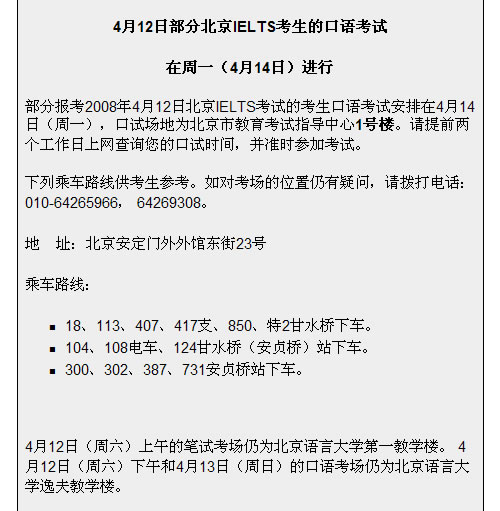 4月12日部分北京IELTS考生的口语考试在周一(4月14日)进行